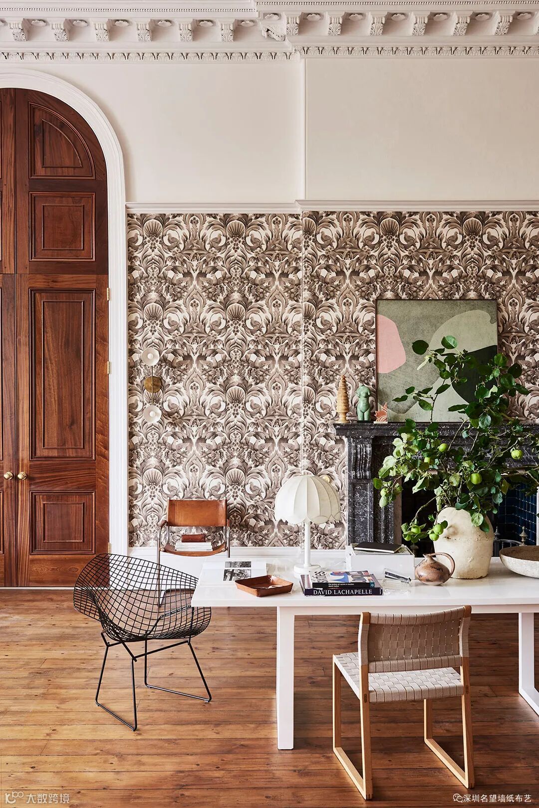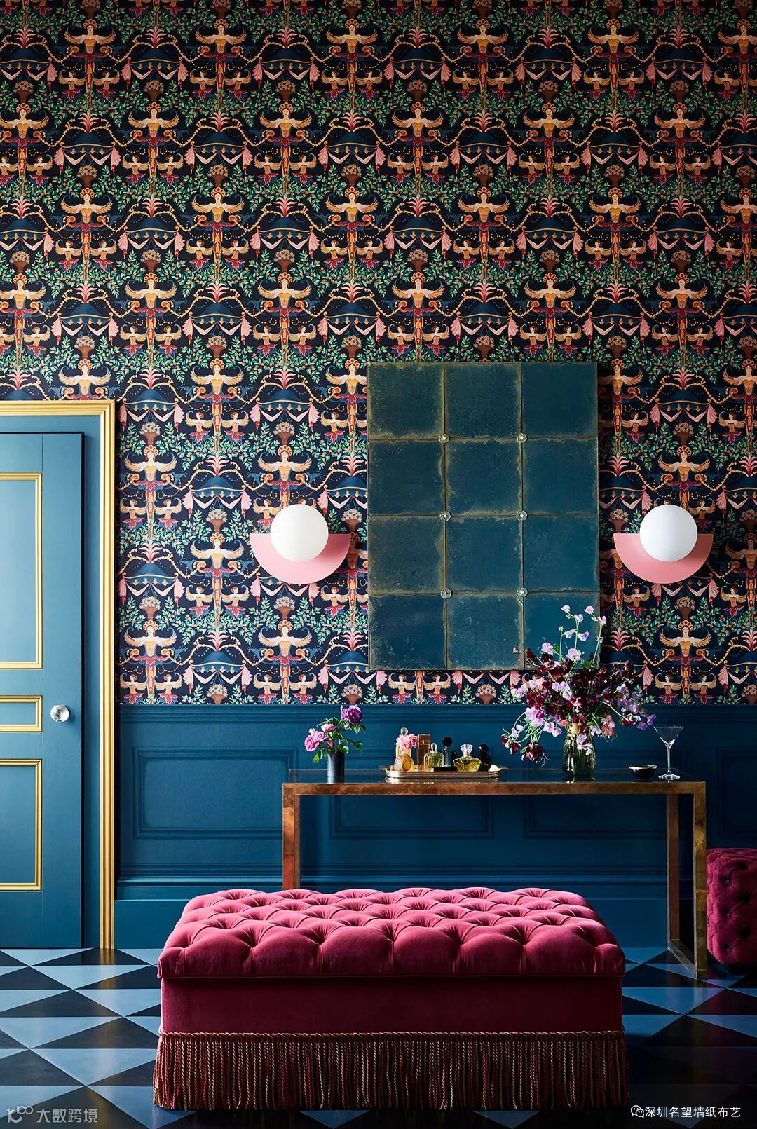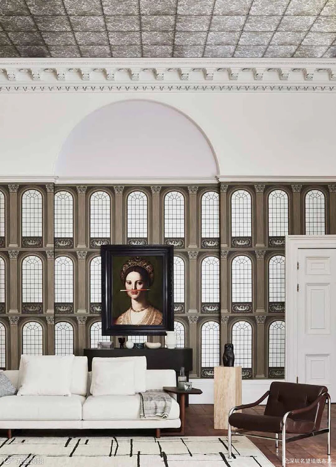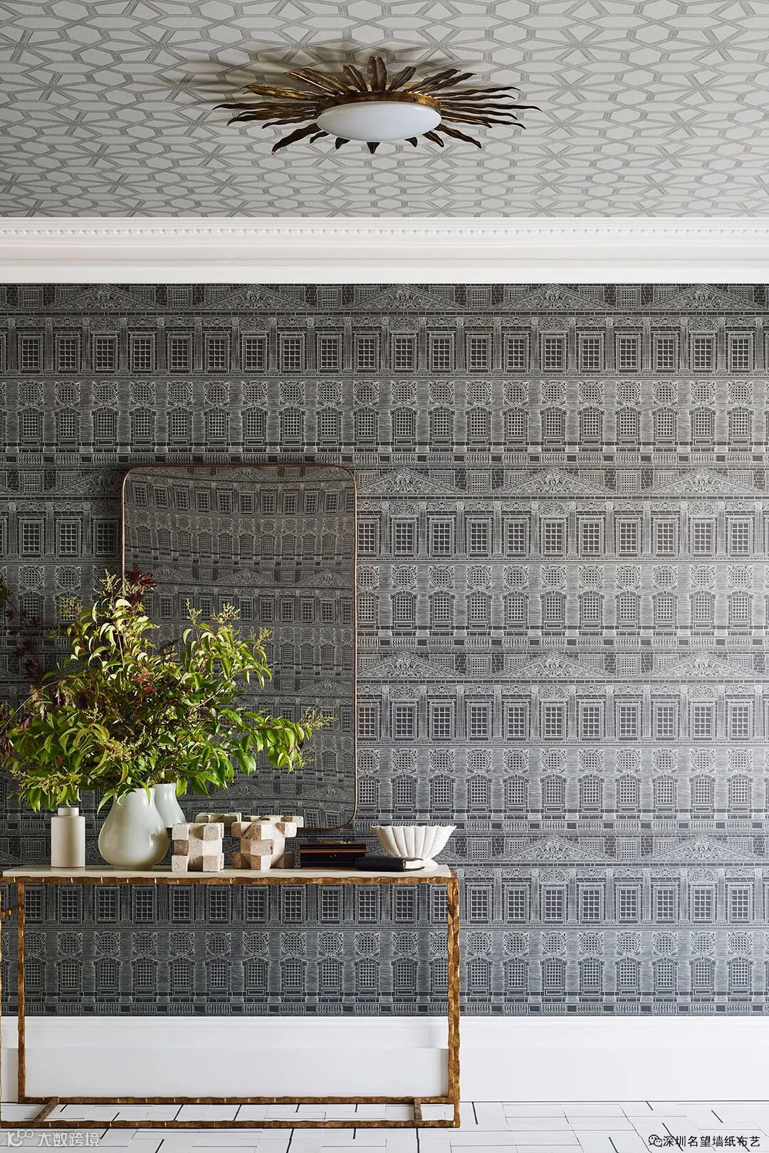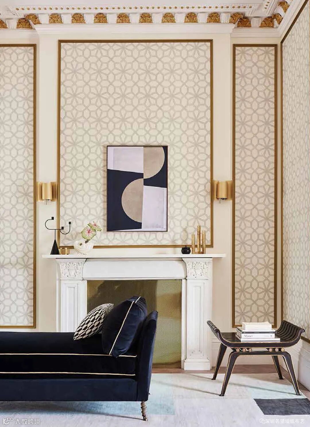 引人注目和极具现代感的Queen’s Quarter是一个由华丽的几何图形组成的一款墙纸,灵感来源于维里奥壁画里的小细节。其不规则的八角形图案是汉普顿宫的女王客厅内一个角落的小插画,这是安妮女王委托其装饰的,作为女王陛下和皇权的宏伟宣言。壁画作为一个整体的设计创造了一个大理石大厅向天空开放的假象,墙壁被漆成像挂毯一样,有着宽大的花边和金色的流苏,正是Queen'sQuarter的闪亮金属元素打动了Cole&Son的创意团队,其低调的重复图案和优雅的细节是传统设计中隐藏的宝石。