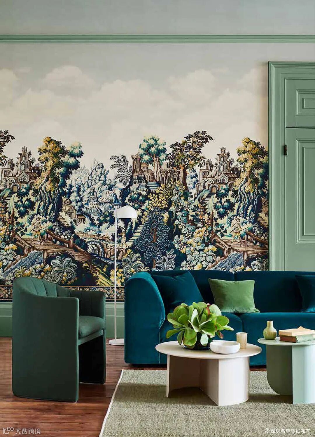 碧绿丝绸挂毯是一款收藏级别的豪华真丝墙饰,是Con&Son公司的定制产品。用100%天然竹节丝绸为基础,设计回溯到曾用于世界上最宏伟的皇家住宅的丝绸墙纸。保留纯手工绘制画出碧绿挂毯场景,这套定制的墙饰是对大师工匠的颂歌,他们还原了17世纪的原始编织壁画。高级的色调让人想起那些仍然陈列在国王肯辛顿宫的会议室内美丽的古老挂毯,其自然基调确保了每个场景都是独特的。这种定制设计适合室内环境,可根据空间大小进行定制,从奢华的卧室到大面积的客厅。绿色挂毯丝绸结合了卓越的品质和优越的艺术遗产,碧绿挂毯丝绸就像是大师王冠上的一颗稀有宝石。