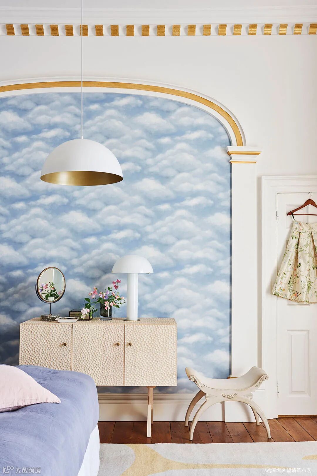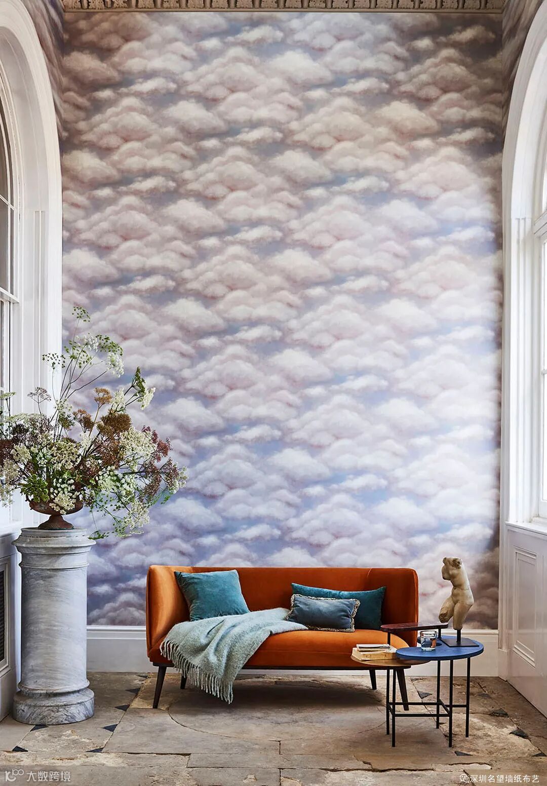 在这个美丽、精致、空灵的设计中,轻巧、蓬松的夏日云朵被微风吹拂着。Fresco Sky壁画天空是对安东尼奥·维里奥(Antonio Verrio)在汉普顿宫国王楼梯上方的巨大壁画天花板的颂歌。虽然这幅巨大的场景是以古典风格设计的,以将国王威廉三世与亚历山大大帝、大力神和阿波罗联系在一起的肖像画为特色,但Cole&son用通畅明亮的色调确保了其设计的永恒性。