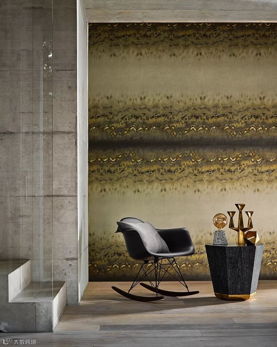Anthology产品特色之一,矿物色与金属色的组合,既充斥着复古的摩登风又极具时尚的未来感。Anthology产品使用特殊的工艺生产,在不同的灯光下面哑光底层和亮光面层凸现了金属光泽的亮度。整个空间奢华大气,简单的纹理图案搭配,又让这份奢华感显得低调,彰显主人的独特高贵品位。