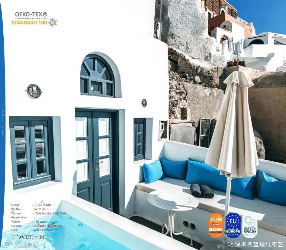 顾名思义,户外面料 “室外织物”是适合户外使用的织物,例如沙滩伞,池畔帆布床。或是阳光下建筑物外的座位。Nitas大多数户外面料的主要特点具有耐褪色(色牢度)的特性,易于擦拭(轻松清洁)是户外面料主要功能的另一个功能。Nitas户外系列面料材质包括聚酯、烯烃和丙烯酸。它们更耐阳光,适合户外家具,如花园椅和泳池边的座椅。