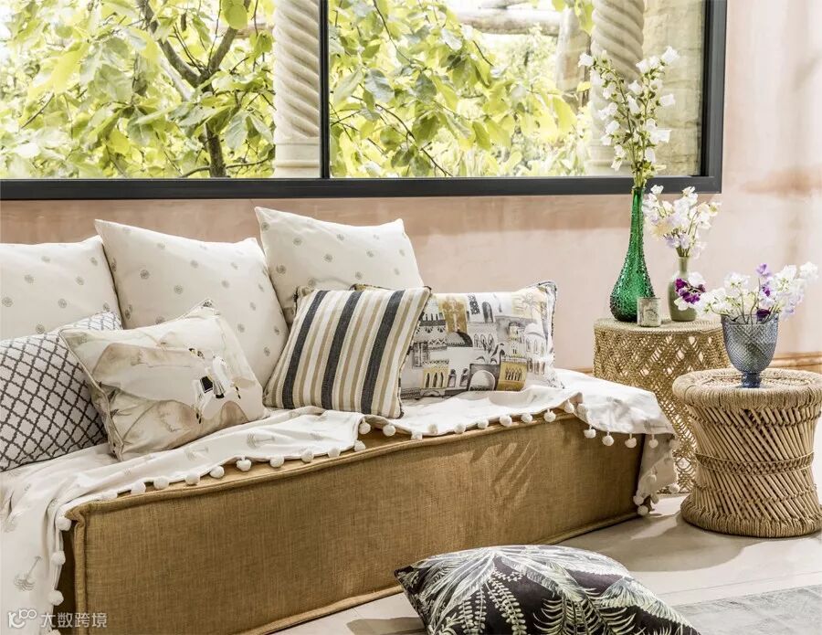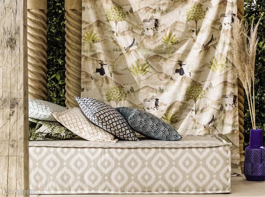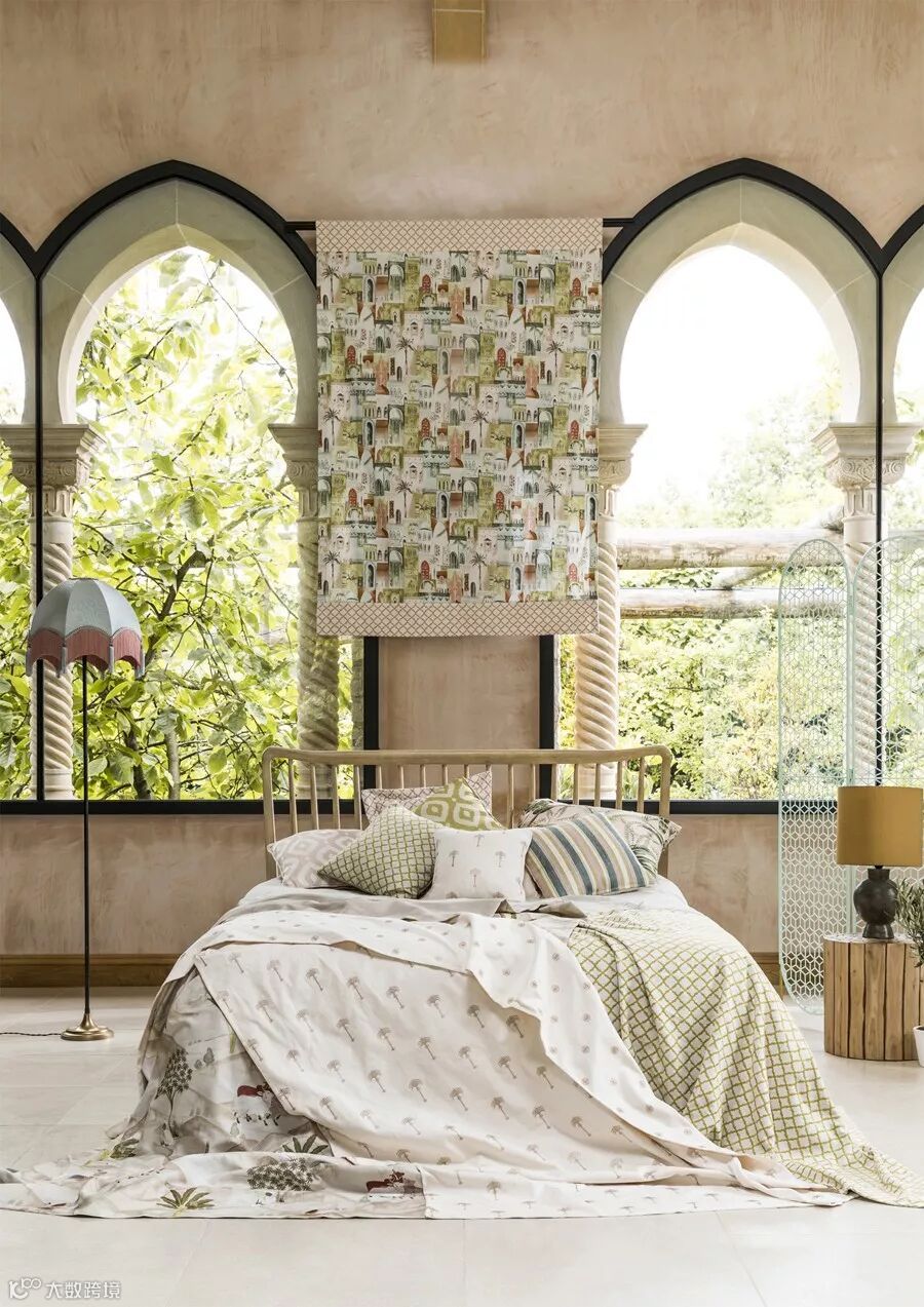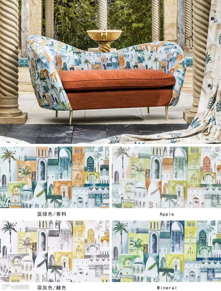 以精美、明快强烈的色彩场景图案体现波斯风格中美轮美奂、无以言喻的建筑美学。让人仿佛置身马拉喀什繁华的街道上。