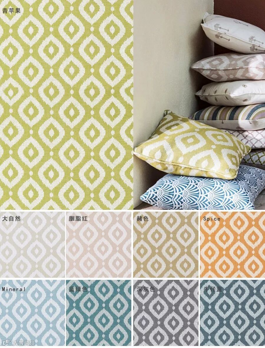 波斯神庙的拱门与圆顶之中随处可见的马赛克,熠熠闪光穿梭其间,繁杂锁迷却又秩序井然,勾勒出建筑的灵魂展现简而不凡的哲学。Soraya系列将波斯神庙中的马赛克解构重组。采用简洁的图案以对称重复排列,清新的配色,采用类似于编织的结构方式,使装饰纹饰具有稳定严谨的效果。