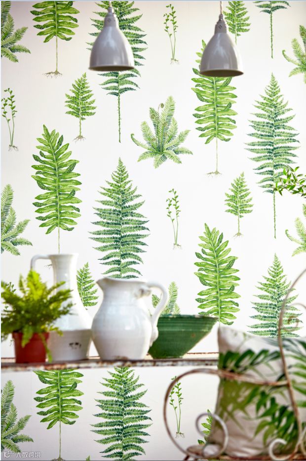 蕨类丛生之处,受19世纪蕨类植物收藏的热潮和随后植物学家出版的绘画作品的启发,这张精美的桑德森壁纸展现了多样而有特色的叶子形状。