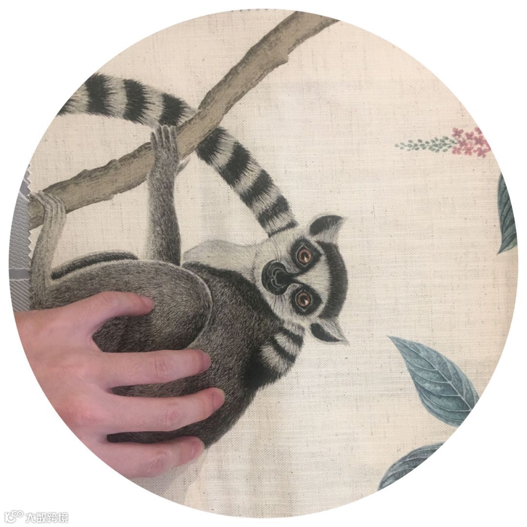 翠绿的树叶,粗糙的树干以及环尾狐猴毛绒绒的精致毛发