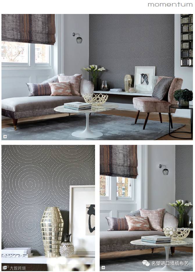 该系列产品的颜色设计十分精妙,多达 30 种,这些交织的色彩可以巧妙地反射光线,给布料形成一种渐变效果。Momentum 的 4 号壁纸是各种奢华纹理的聚集地,其间还掺杂着亮点和磨砂效果:这些壁纸对面料进行了完美烘托,但同时还深刻宣扬了其自身特色。