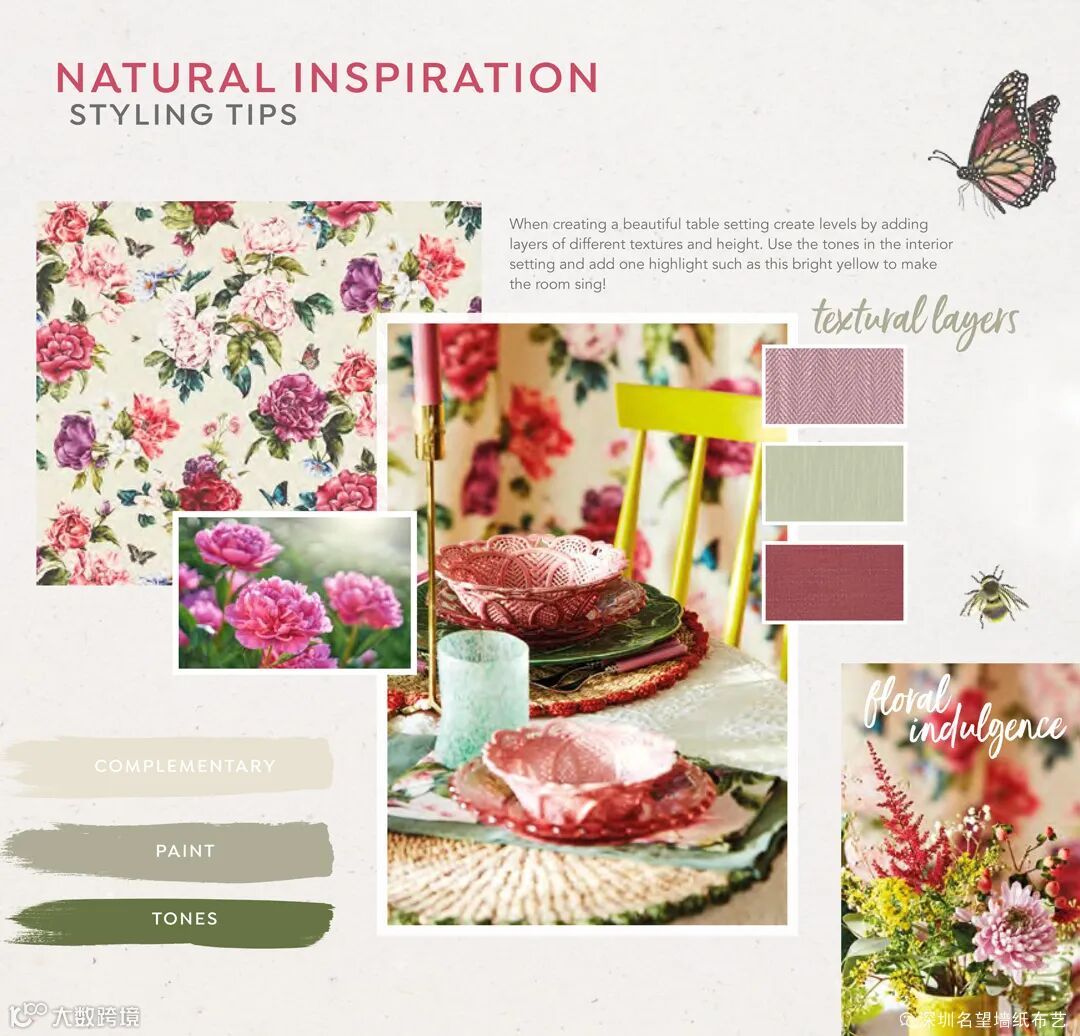 玫瑰图案因其充满变化的可能性,从质感表现,色彩搭配和有序或无序的排列,持续演变幻化,总能给室内空间增添趣味性和生命力。