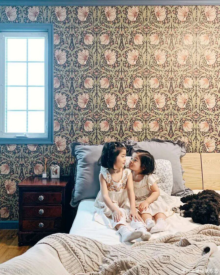 ▲干净的线条、古典的Acanthas墙纸和现代代家具混合在一起,让卧室看起来非常典雅与浪漫。
