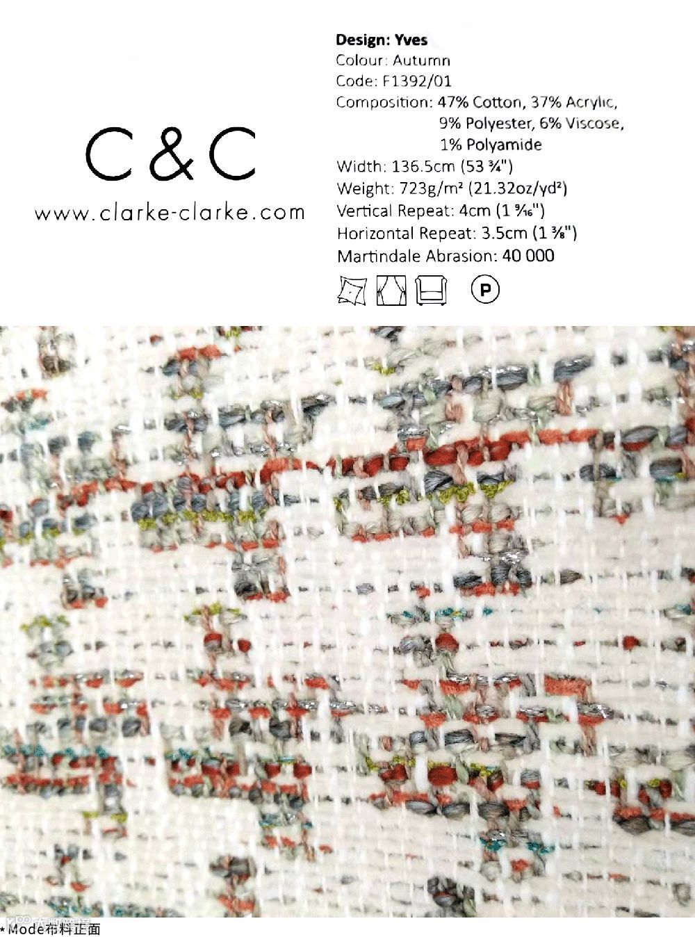 香奈儿高雅、简洁、精美的风格已整整存在了百年毋容置疑,Clarke&Clarke受到时装秀的启发,推出了这一优雅的双重用途编织系列,Mode系列布艺精致的色织条纹,细腻的经纬交织,凹凸有致的起伏,给面料增添了许多不同的质感。粗纱线展示了一系列实用的颜色,包括迷人的暗褐色、浆果色、秋黄色和孔雀蓝,外观整齐的编织和现代格纹,这种质料舒适的定制面料是任何别致的家庭装修的首选。