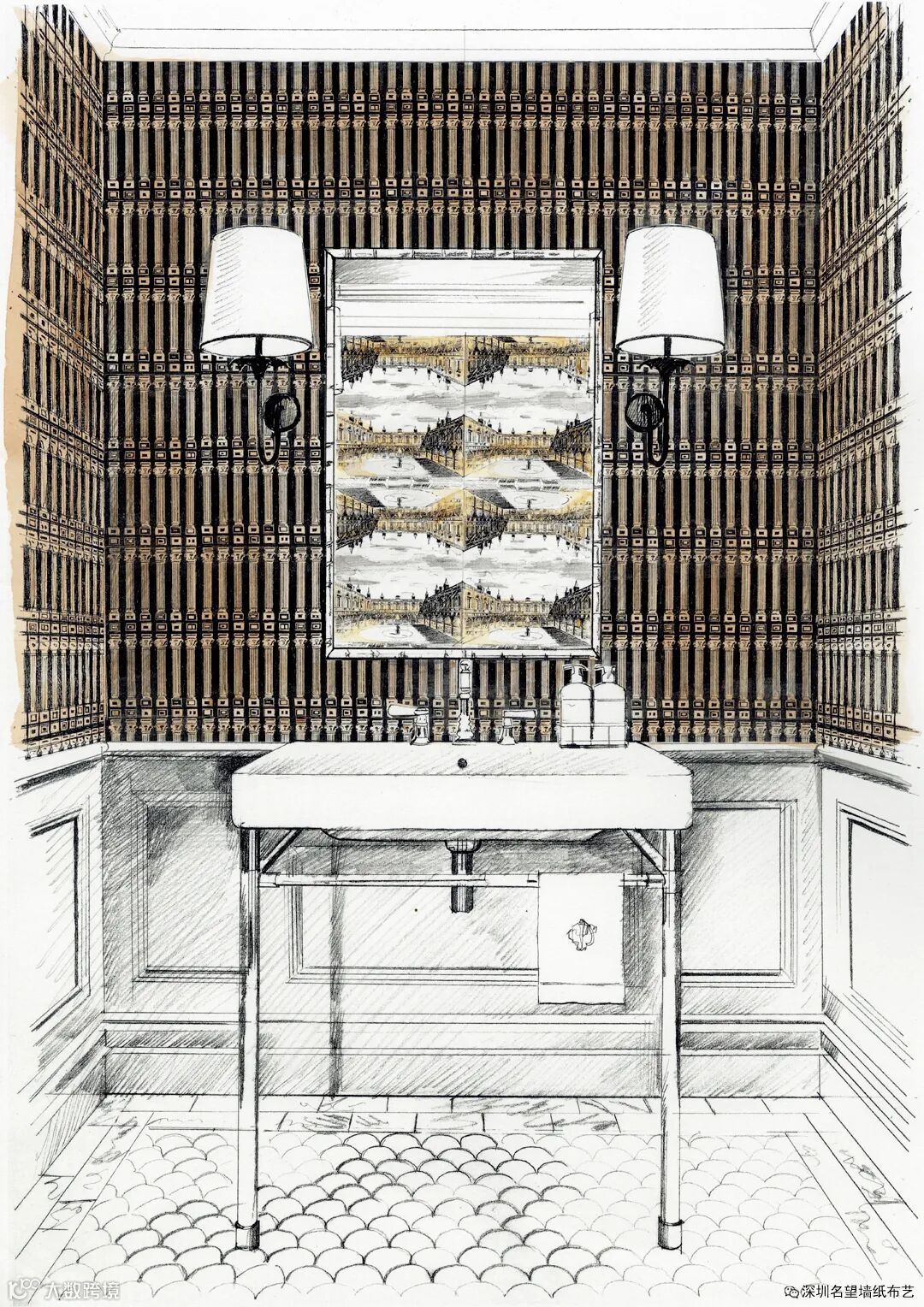 它的起源是在Somerset Montacute古老别墅城墙之间,此系列设计特点是在拱廊壁龛中整齐排列的古典雕像。代表着时间的永恒性,原始的标记制作细节完美地捕捉到了艺术家们当时的笔迹。
