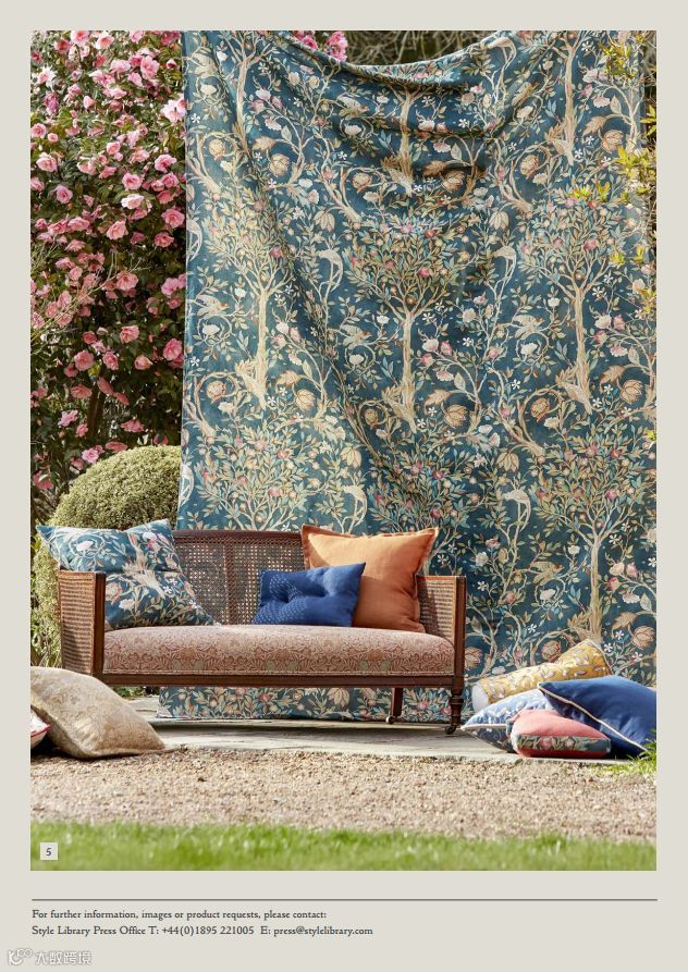 1877年,由威廉·莫里斯设计,伯德忠实地复制了同名布料。展示莫里斯的经典挂毯外观,这种纹理编织是完美的沙发。