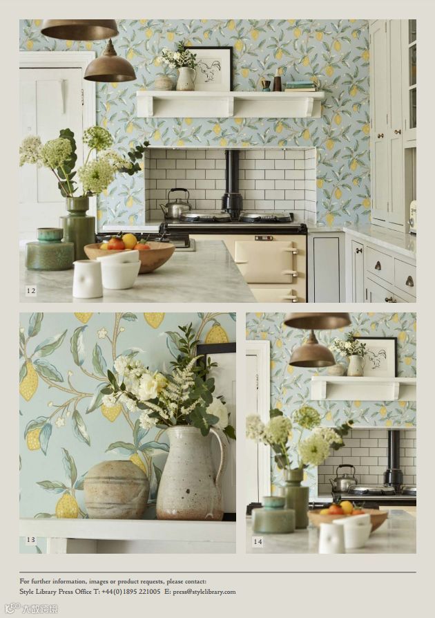柠檬树的灵感来自威廉·莫里斯最喜欢的墙纸之一“水果”中的柠檬,柠檬树的白垩白印花为下垂的树枝和精致的花朵增添了细节,创造了这个清新而平静的设计。