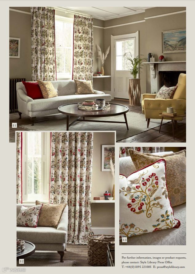 面料:威斯米娜(Withelmina) 226605,米德尔马(Middlemore) 216695,莫里斯橡子(Morris Acorn) 236827