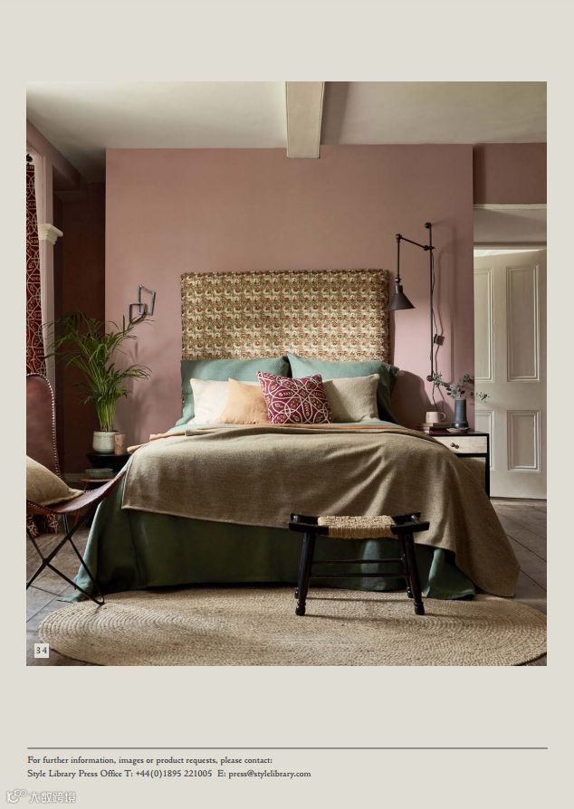 垫:Ruskin Slate 236882, Ruskin Brick 236870, Ruskin Evergreen 236865, Ruskin Brick 236870椅子:Rose Uniake www.roseuniake.com*缝制扶手椅