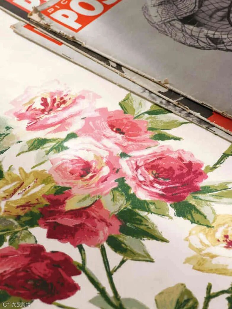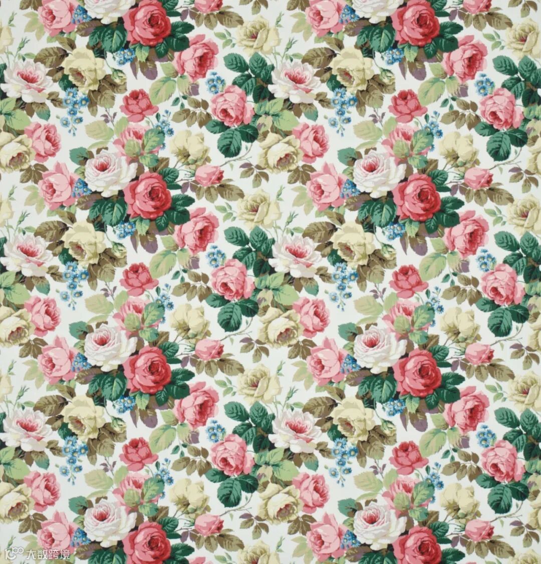 玫瑰与牡丹图样完成于1914年,是桑德森公司最成功持久的图样之一;该图样灵感起源于19世纪中叶磨擦轧光印花棉布。起初此图样只用于墙纸的生产,到上个世纪三十年代,此图案被用在提花窗帘装饰布料上:当时采用的是滚筒印刷,用16种颜色进行双面印制。此生产工艺一直延用至上个世纪六十年代晚期。迄今,玫瑰与牡丹仍然采用双面滚筒工艺。作为布艺和墙纸的协调物,玫瑰与牡丹图案在1972年重新大放异彩,继续采用16种色调和丝网印刷工艺。
