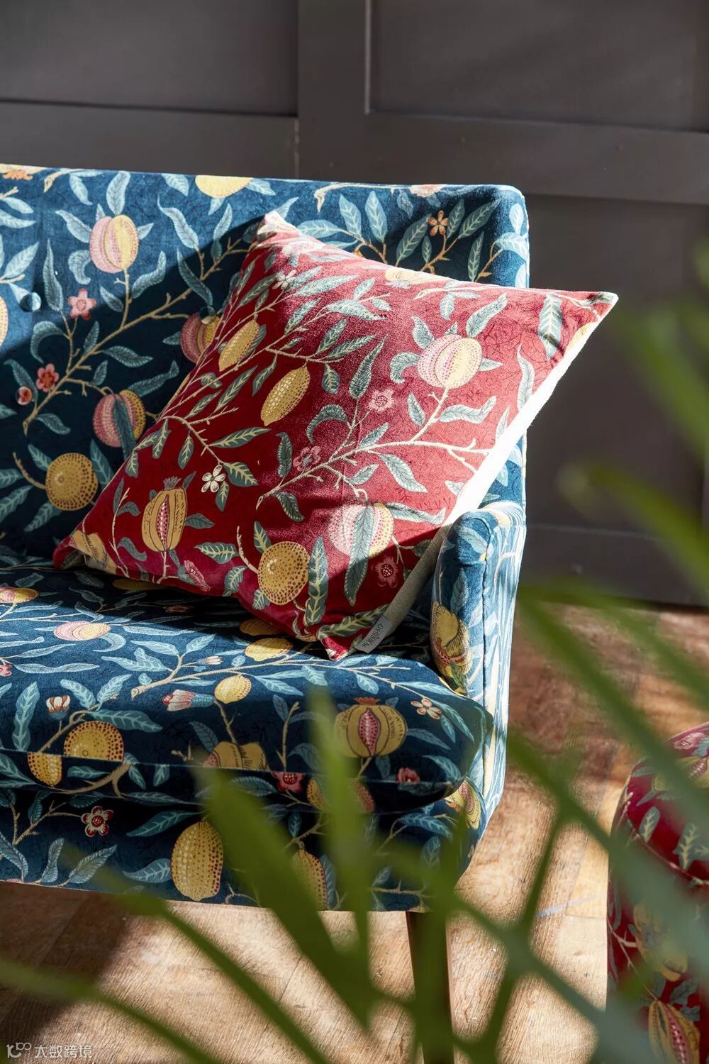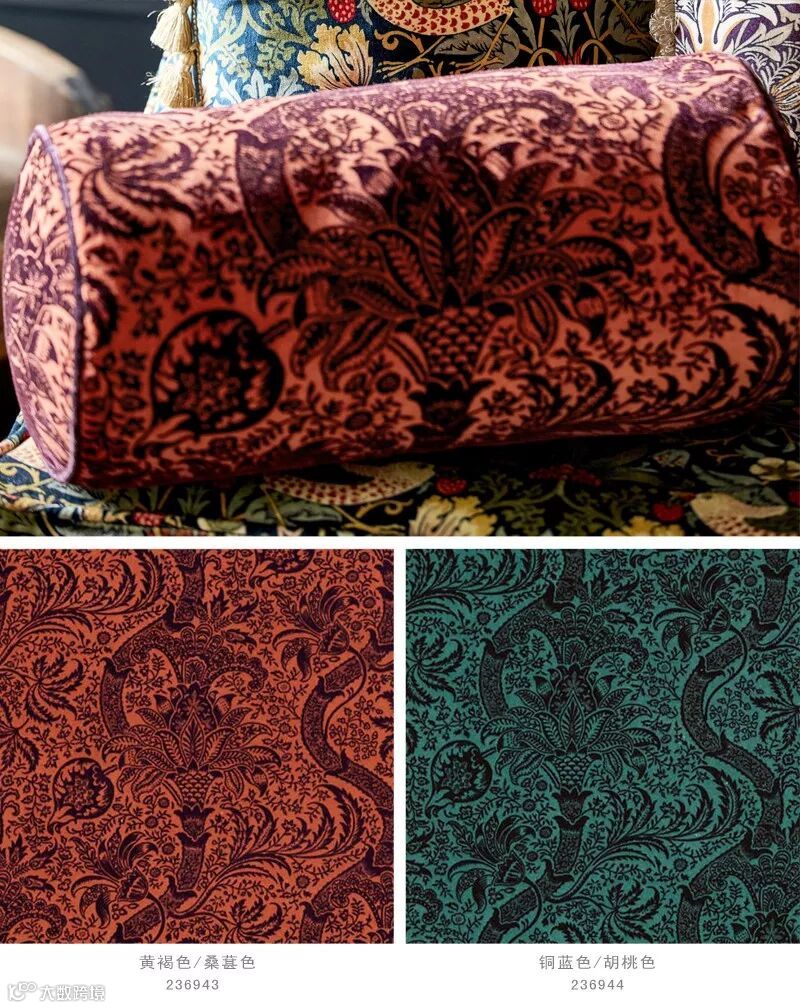 水果天鹅绒以各种原汁原味的色彩再现,以靛蓝色、胡桃色和果实图案的华丽、现代色调为特色。
