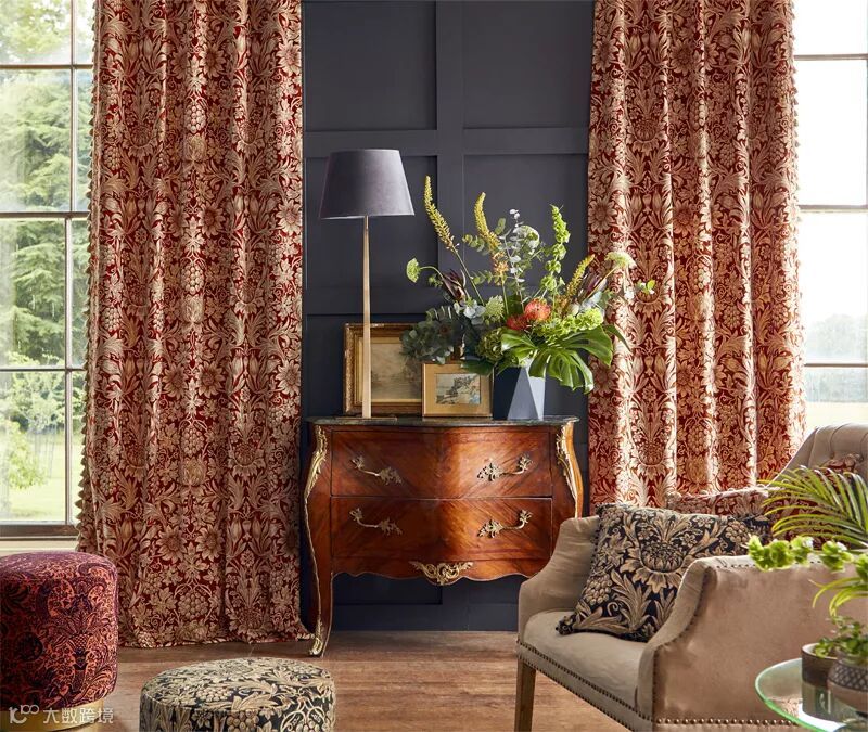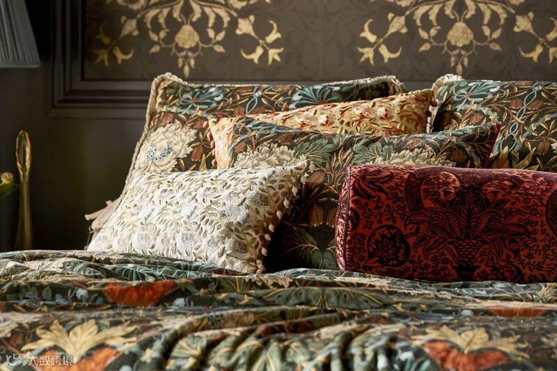 在教堂里,William Morris发现了玻璃可以反射出五颜六色的光芒,觉得特别的美,Morris & Co.公司设计师以此为创作灵感创造一个充满所有Morris所想事物的迷人的沉浸式世界,以前所未有的方式融入色彩、纹理和图案。