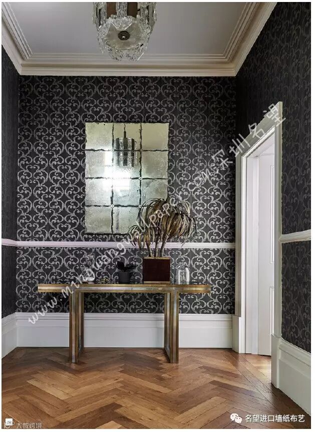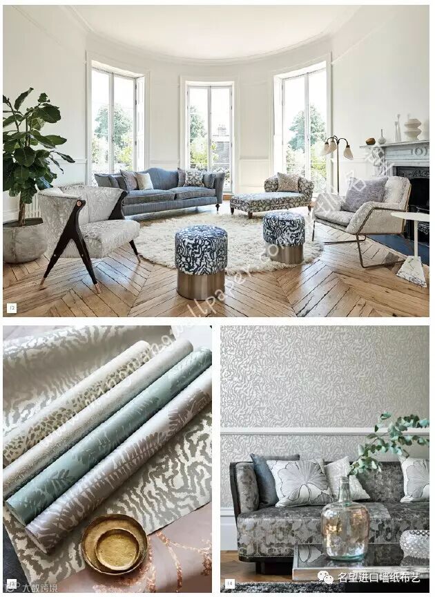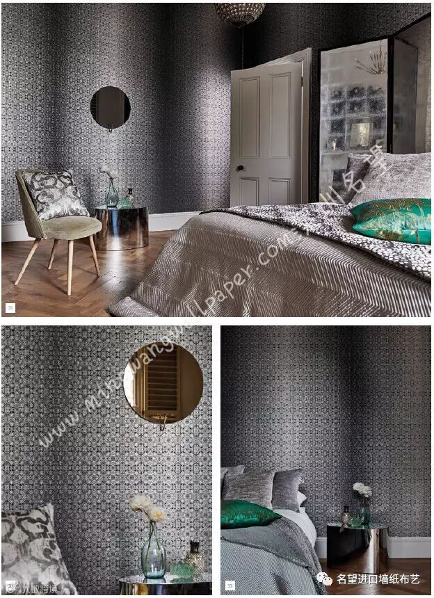 Louise 表示:“通过对比效果的饰面,比如哑光面和亮面、高亮度和低亮度,让面料的手感和外观更显华丽奢美。而幽光闪烁的饰珠、亮粉和金属片,更增添了壁纸的现代气息和悦动美感。”
