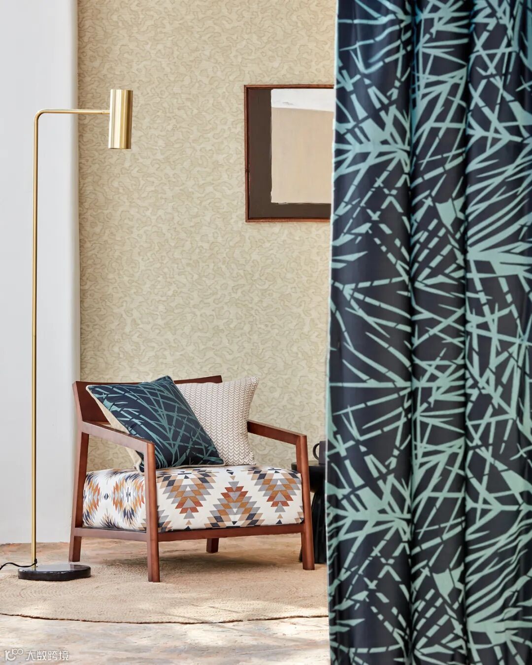 Alvaro系列布艺让人想起在微风中摇曳的棕榈树,这是一个有爱的绘画设计,属于100%的