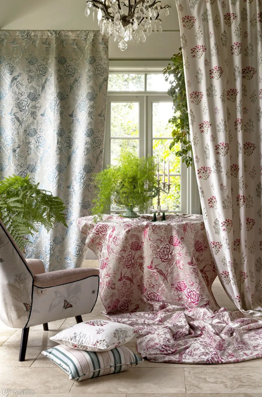 被英国乡村和生活在这美丽环境中的迷人野生动物所吸引产生的设计灵感。以花卉小径、提花叶轮廓和精致点缀的蝴蝶为特色的设计,与奢华的天鹅绒、双用途编织条纹和素朴质感的布料搭配。象征大自然的植物元素,是家居装饰中炙手可热的单品,用清爽的姿态和怡人的绿意,让整个家居空间的氛围耳目一新。
