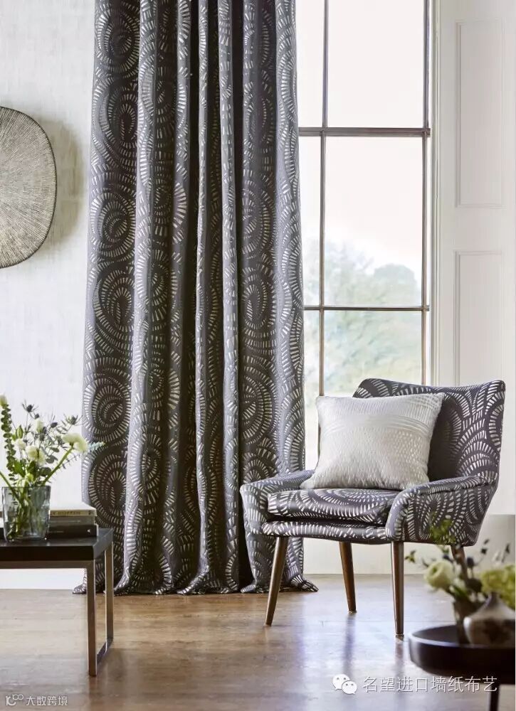 化石般的螺旋型图案,以富有纹理效果的饰面进行强化,适用于窗帘和家装面料。
