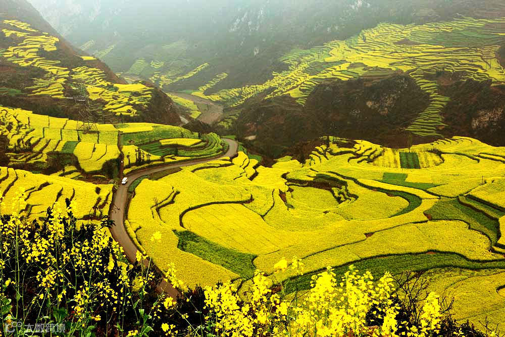 既然来了这里,一定要看看螺蛳田。这里的油菜花田展现出其特有的风格,一圈一圈的梯田随着山势而走高,仿佛一颗颗螺蛳,满满的油菜花真的会让你惊叹道。颜色稍有差异的色块就像是深浅不一的色环相互套在一起,真是大自然的杰作啊 !