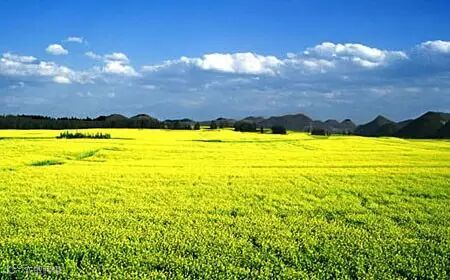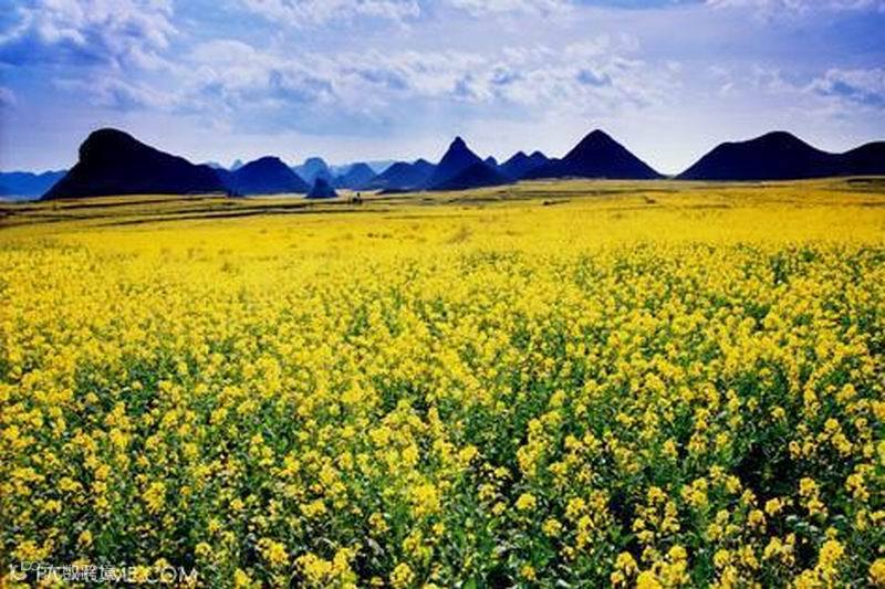 罗平是我国的油菜生产基地县,也是蜜蜂春繁和蜂产品加工基地。每年2、3月份,20万亩油菜花在罗平坝子竞相争放,放眼望去,是一片一望无际的金黄,无论什 么人,凡驻足这个最大的天然花园内,无不感叹罗平是“金玉满堂”之乡。每年的春节过后,罗平坝子便是油菜花的海洋。这是一片金色的海洋,并且荡漾着清香。