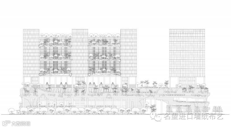 横向纹理缝隙间恰当的栽植了树木和藤木。