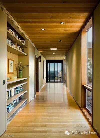 如果是半开放式的比较宽敞的过道,可以在墙面的装饰设计上突出重点,比如通过不同材质产生层次变化,用丰富的色彩或者图案等增加过道的动感;如果是封闭式且很狭长的过道形式,可以在过道的尽头处做对景台,以次来截取人们的视线交点,让人感觉不到狭长。