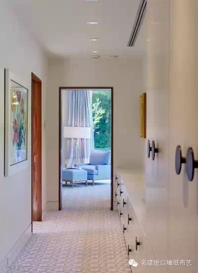 过道墙面装饰设计应为浅颜色素颜色,并保持简洁。暖烈夸张的颜色有膨胀感,使得墙面更有向内的感觉,显得走道更受挤压。
