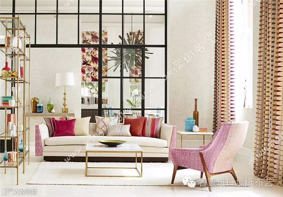 Tresillo 布料和壁纸的设计生动活泼,重点突出颜色和图案的搭配,可为室内设计增添无穷生气和活力:其图案风格尤其适用于装饰落地窗、阁楼或时尚的联排别墅。