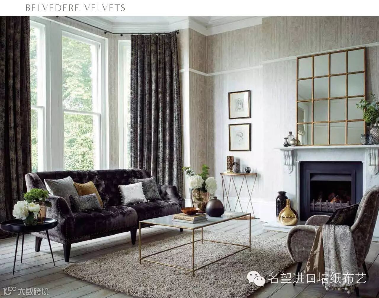 榈系列的精美印花与四种由三种高档奢华、闪闪发光的 Belvedere 天鹅绒制成的编织物互为补充。