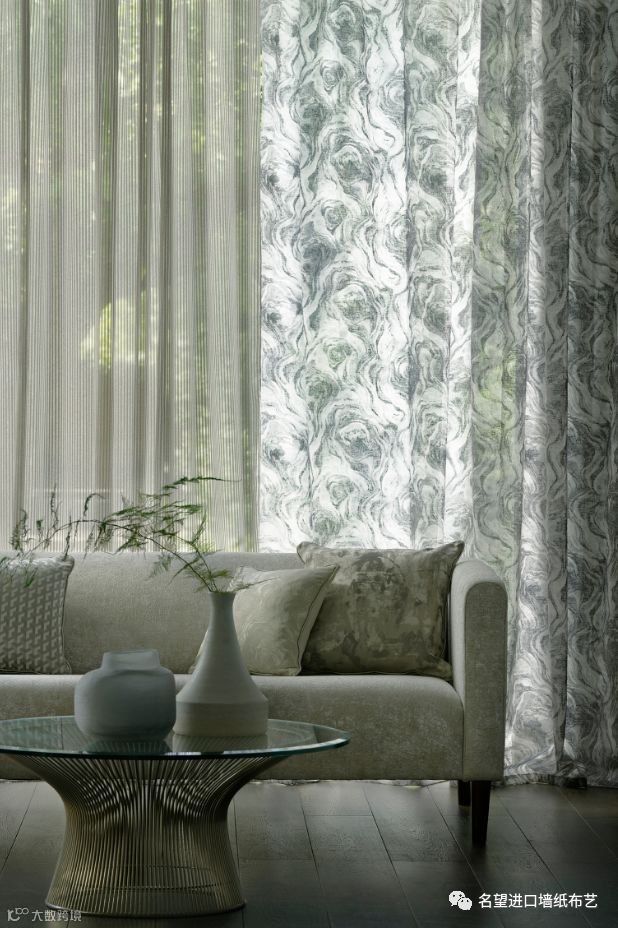 罗斯欧系列故事成功的延续了这一美丽的光泽面料。旋转的大理石纹路,不良纹理和金属高亮的七种颜色组,从醒目翠鸟,黑色和金色,软香槟和亚麻布色调。华丽的几何图形,精致的纹理和三维效果珊瑚图案风格显得更加华丽高档。