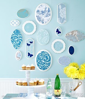 零碎的壁纸代替原有的装饰画,平凡的浅蓝色墙面,因为这些极具变化的外框造型而丰富起来。自由而随意悬挂的装饰品,虽然图案不同,却都同一色系的产物,为墙面营造出了简单而随性的格调。