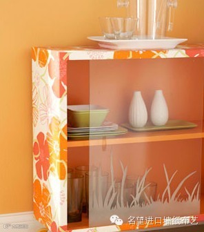 准备废弃的展示柜因为壁纸而重获新生,原本单调的收纳突然妙趣横生。夸张的图腾布满其上,再搭配各色的饰物,让收纳柜焕发出新的光彩。