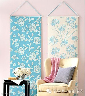 将长条形壁纸装裱成画,选择色彩对称的组合一起来装饰墙面。经过如此巧妙的安排,不仅使墙面拥有层次感,同时展现出独特的创意。