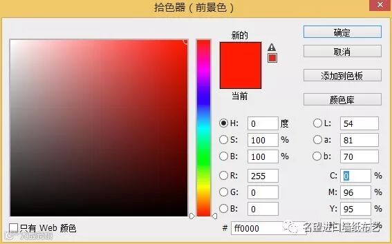 这是PS下默认的正红,R:255,对应是C 0 M 96 Y95 K 0,但是人眼和数据的认知是不一样的,人们认为正的红色会有一点黑而不是这样艳的感觉。