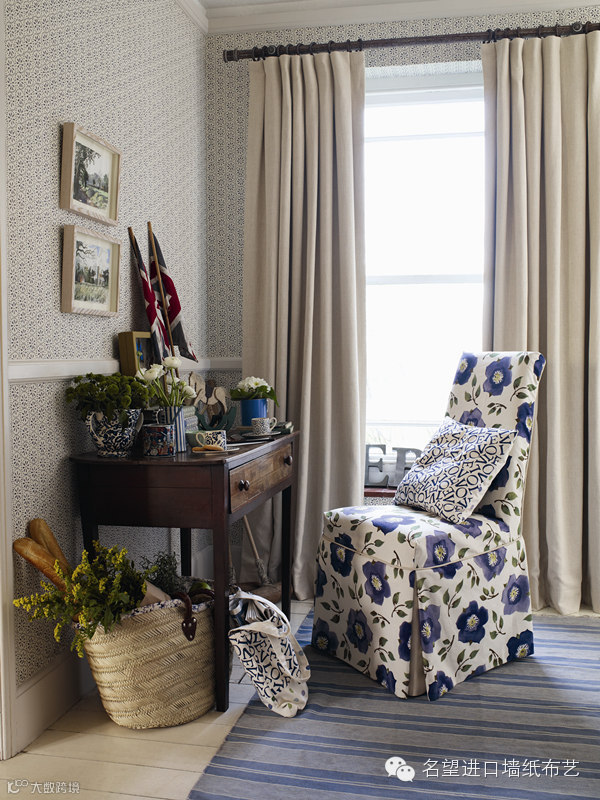 谁说只有绿色、黄色的花卉图案才能演绎田园风情,时尚的蓝色大花朵图案演绎起田园风格来也是当仁不让。蓝色这种接近蓝天、大海的色彩,运用在家居装修中,最能体现出屋主沉稳厚重的个性。而适当用蓝色花朵图案软装作点缀,则能让家居空间成为很好的放松场所。