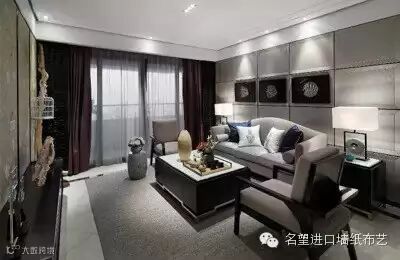 多以深色木墙板搭配同色系浅色新中式家具为主要配色方式。