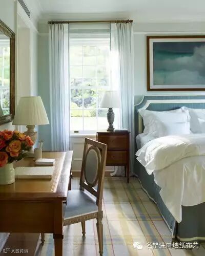 法式乡村风格多采用淡雅自然的颜色组合,例如米白色/奶油色/米黄色/淡棕色/淡蓝色/水粉色/灰色等低纯度色彩,营造休闲/宁静和高贵的法式风情。