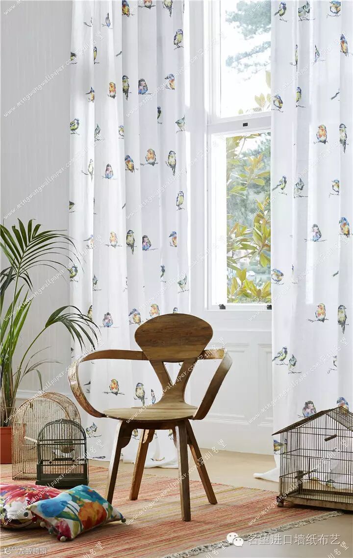 透明的编织面料上,点缀着英国装饰风格的鸟类以绝无刻意雕琢、
