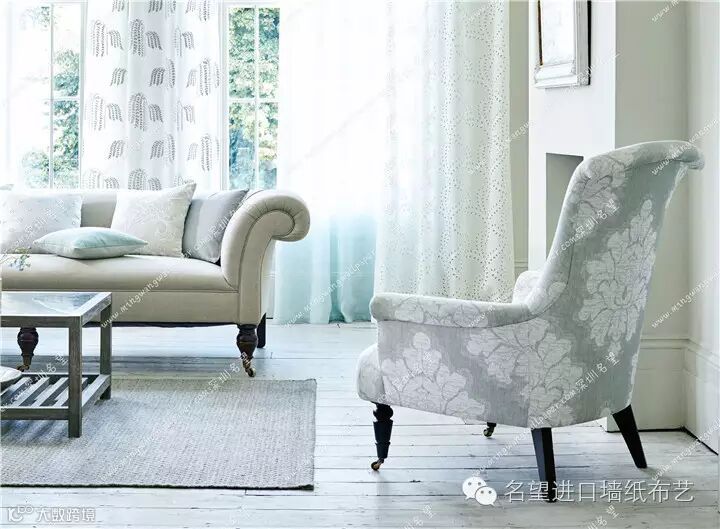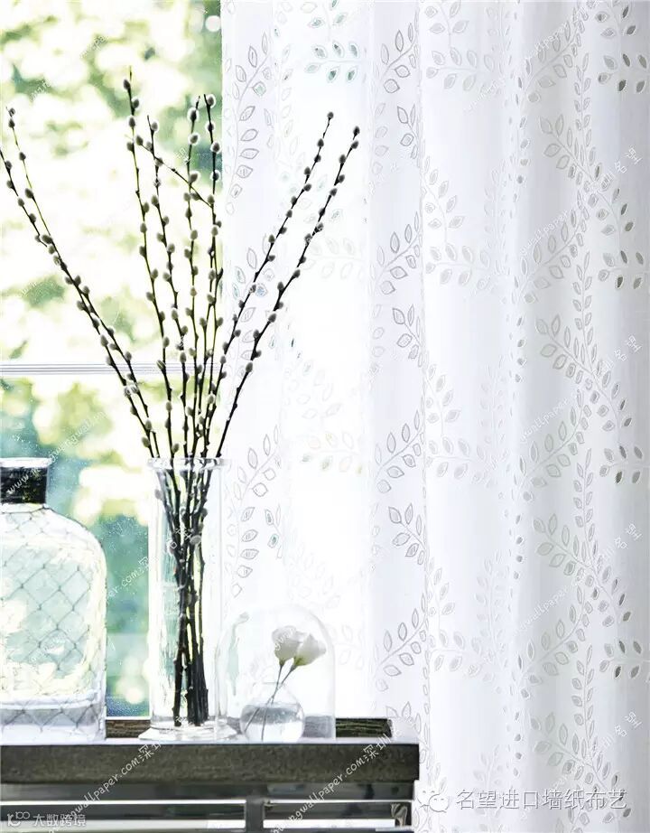 一款半透明挖剪图案,简约漂亮的花卉图案,灰白色调,棉/麻混纺面料,白色家具白色墙面浅色地板,干净也不失特点~