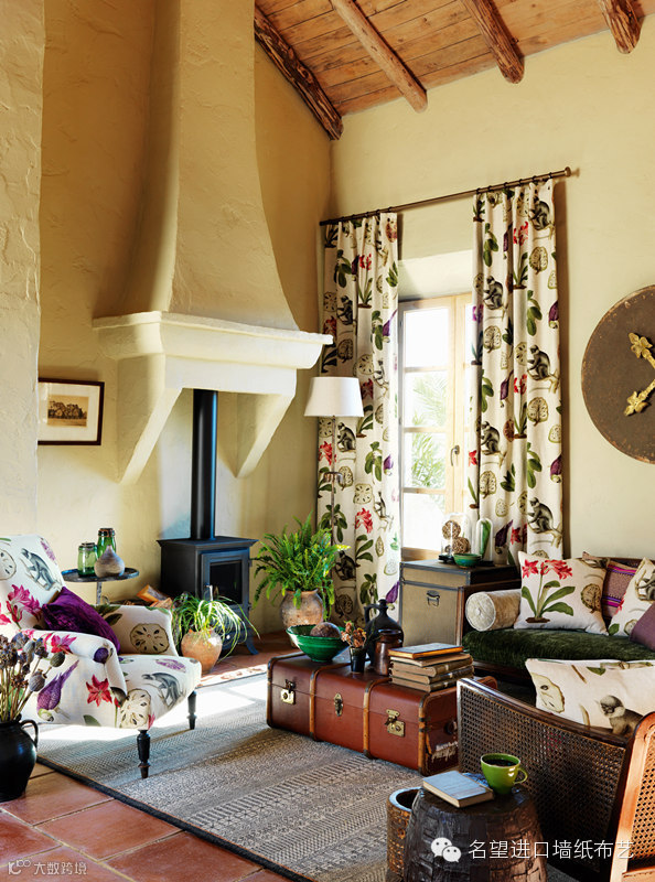 与含蓄优雅的古典风不同,现代人们更喜欢夸张激情的装饰,这也使得近年来“巨型”图案大为流行。在“新贵族”风格中,窗帘上的花草图案也经常采用这一设计手法,原本细密的组合转向彼此更开阔的布局,同时整体造型尽可能的放大,配合简化的线条和色彩,让人仍然能在强烈的视觉冲击下找到属于经典的那份韵味。
