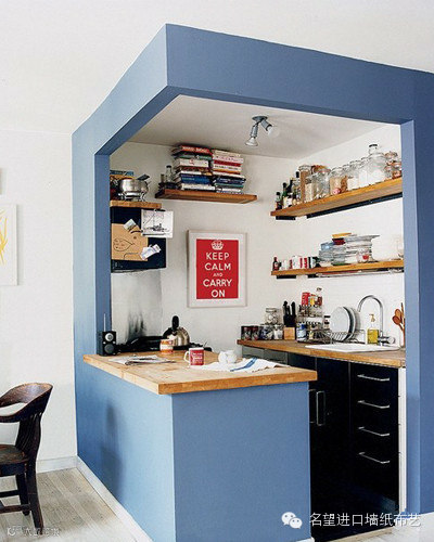 →选一个合适的角落,例如开放式的厨房、吧台等,用活泼艳丽的色块大面积“框起”这个角落,怎么样?是不是立刻多了点波普风的味道?