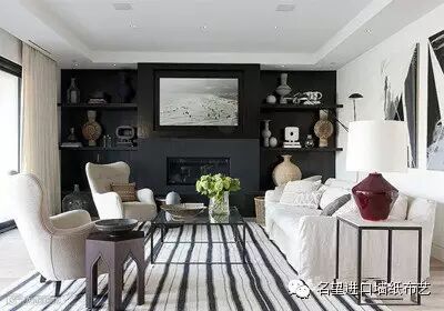 → 对于客厅里的电视墙,采用暗色调对比其他浅色调墙面,可以在视觉上突出屏幕,扩大客厅空间,别有一番实用美观性。