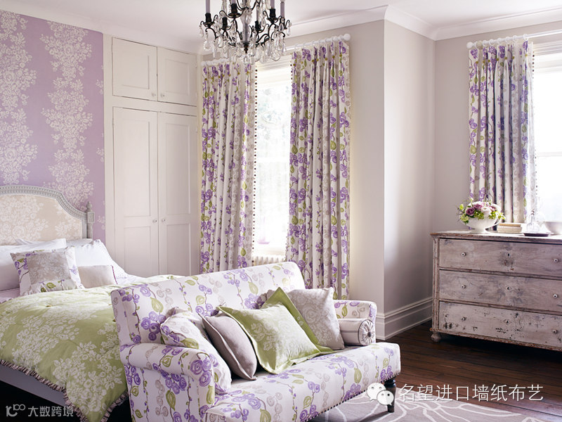 淡然紫色,不张扬、不叛逆,却最能是居室变得温馨浪漫。以紫色为主调的家居环境配合田园格调的图案,表达了一种以现代艺术诠释浪漫神韵的感觉,从而能透射出不可言语的舒适感,为家居增添许多简约却流露着品质之美的视觉享受。