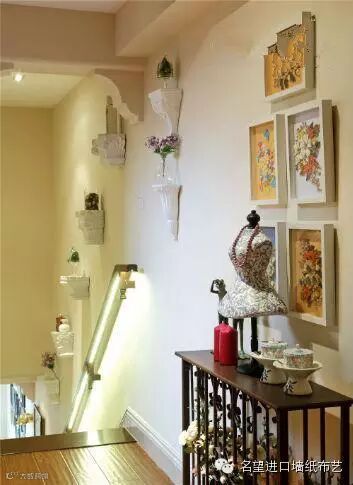 开敞的空间,错落有致的布局,融合了实用性和建筑美学。墙面上大小迥异的照片有规则地贴放,美化空间,彰显浪漫柔情的空间个性。