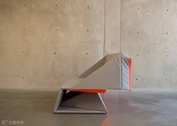 来张极端一点的折叠沙发案例:来自美国加州的设计师Yumi Yoshida 从日本传统折纸中获得灵感,设计了这张可平铺变成一张大垫子的沙发,不用时也极其方便地将其折叠后放入储物间