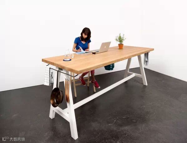 来自慕尼黑的设计师Moritz Putzier设计的一张桌子不仅能用来进行日常的办公学习,还是一张多功能的餐桌,从准备食材到烹饪到用餐都可以用其完成。