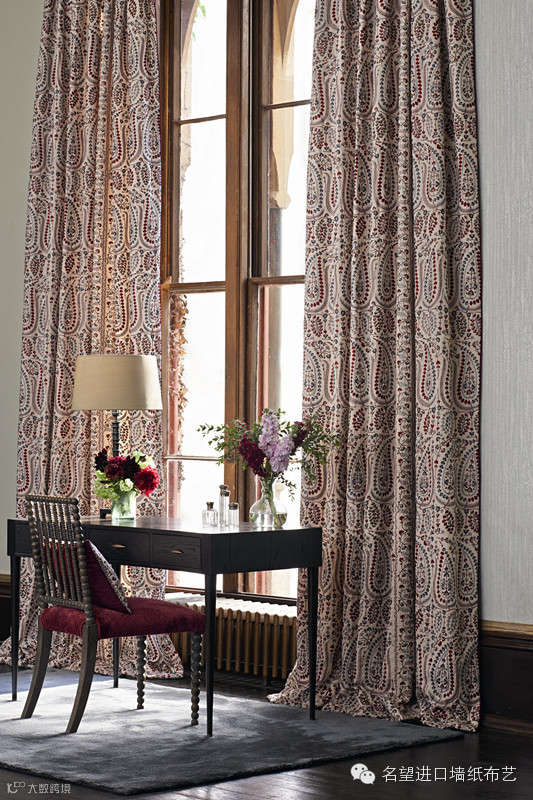 卧室是业主的私密空间和休息场所,所以窗帘要选择较为厚实、遮光效果好、并带有吸音效果的产品。窗帘的款式色彩应以温馨宜人为格调,窗帘的轨道也最好选择静音型或者具有消音功能的款式。